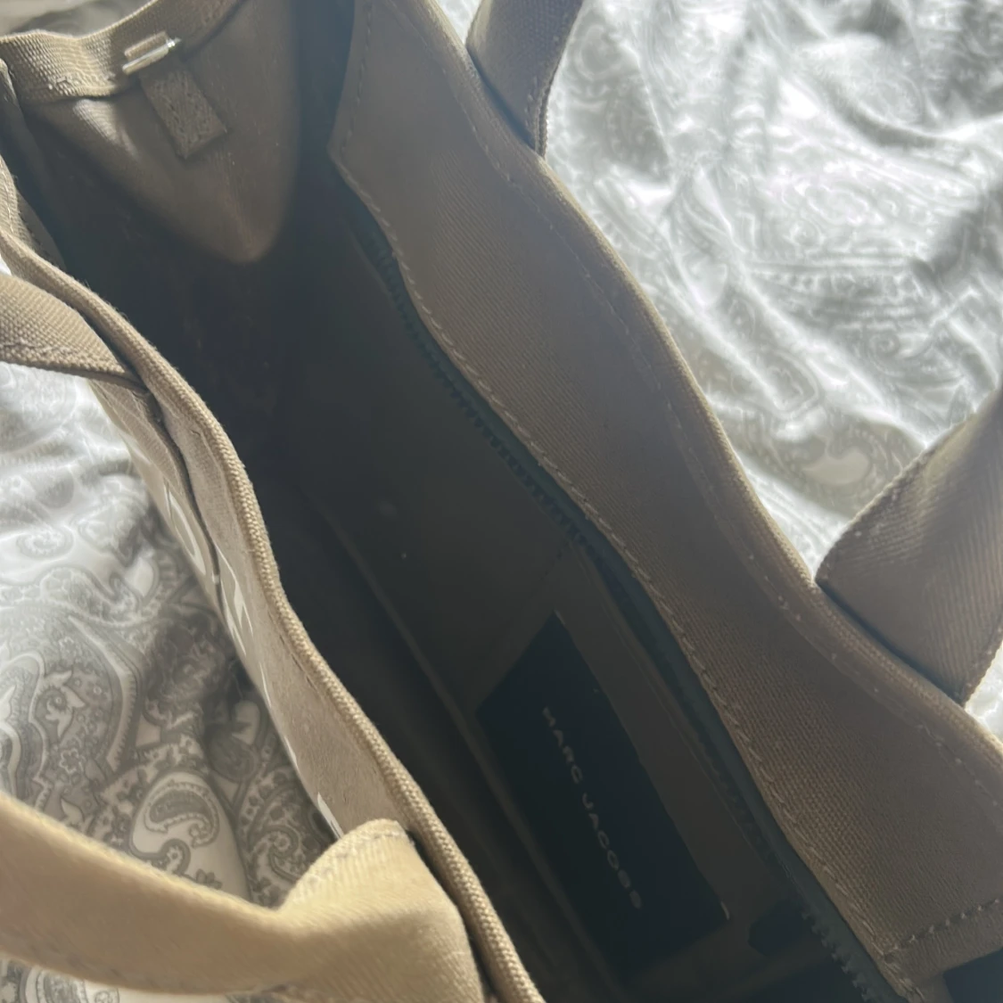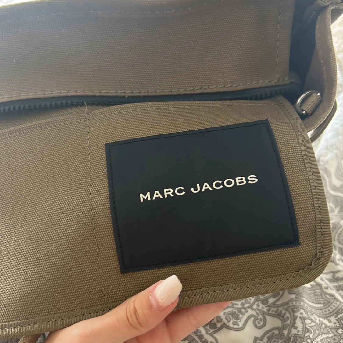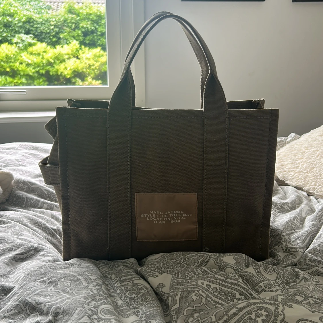 Säljer en snygg militär grön Tote Bag från Marc Jacobs i kraftig canvas. Väskan har tydlig logga framtill, dubbla handtag och innerfack med dragkedja. Perfekt storlek för att få plats med allt du behöver och passar till många olika outfits.
