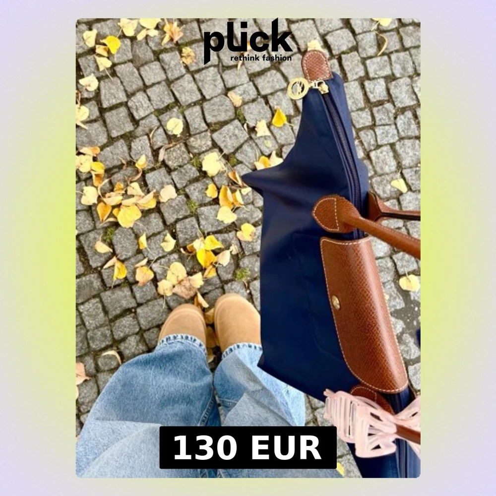 Säljer en klassisk marinblå axelväska från Longchamp med bruna skinnhandtag och lock. Väskan har guldfärgade detaljer och dragkedja med Longchamp-logga. Perfekt storlek för att få plats med allt du behöver och stilren design som lyfter din look. I Le Pliage modellen