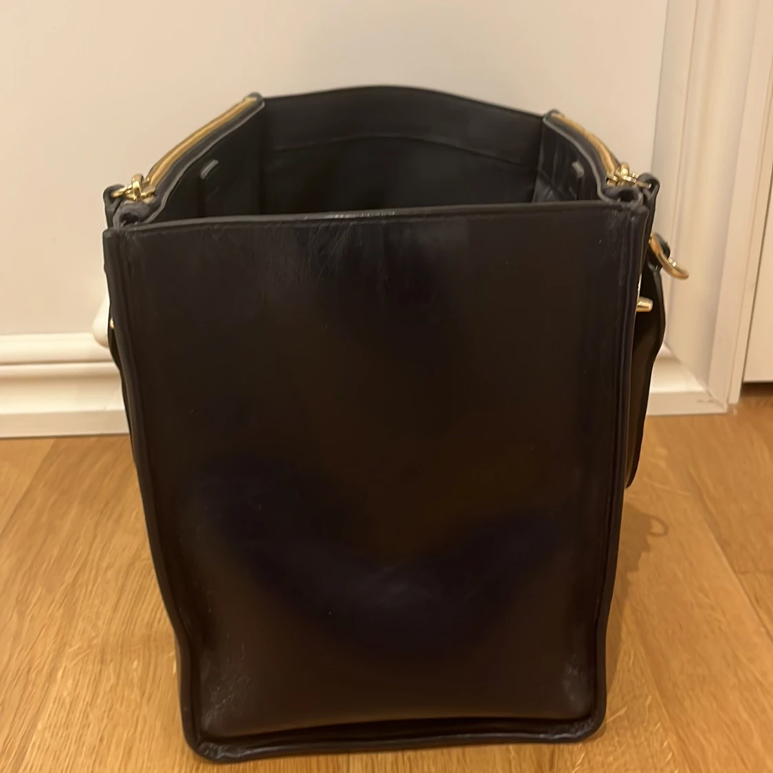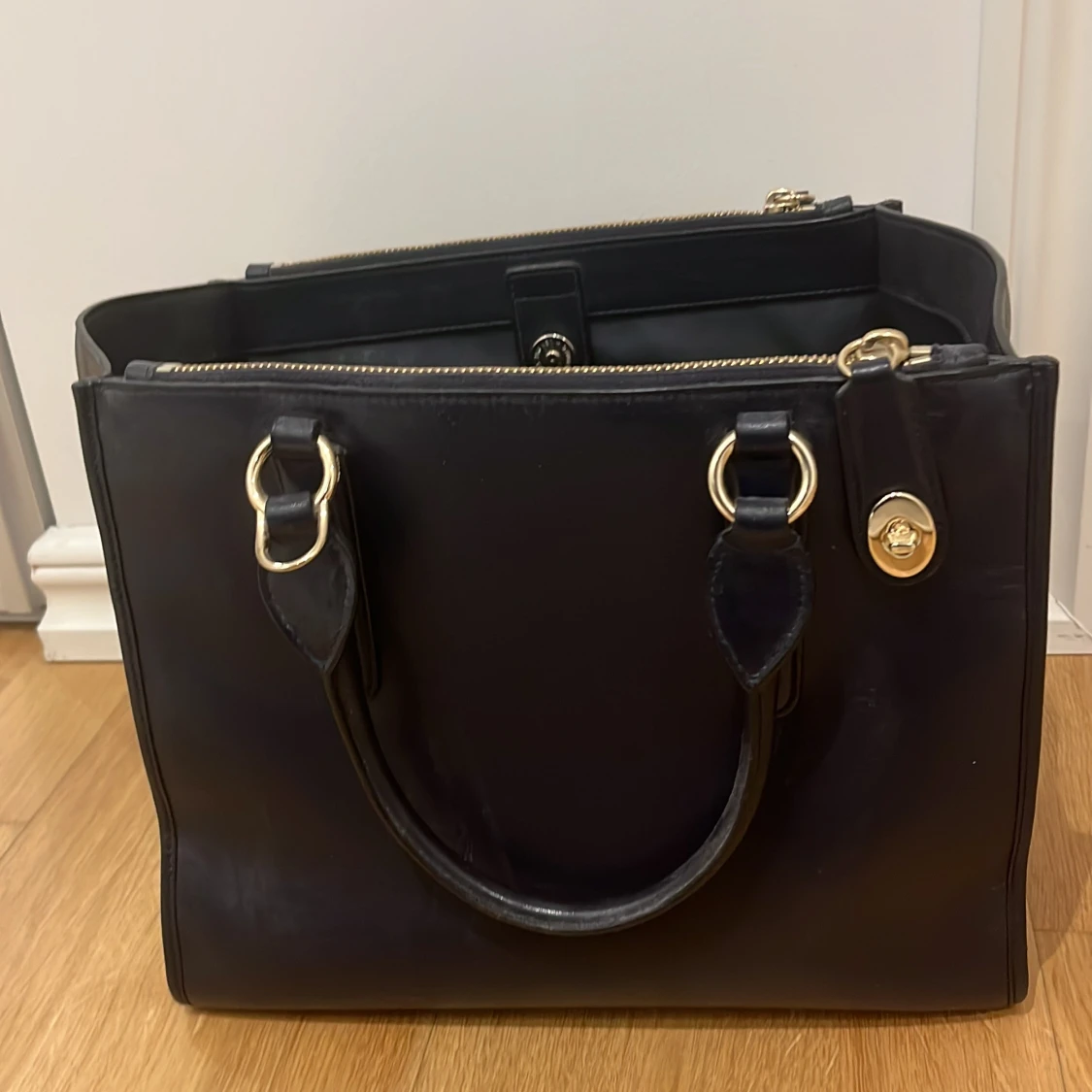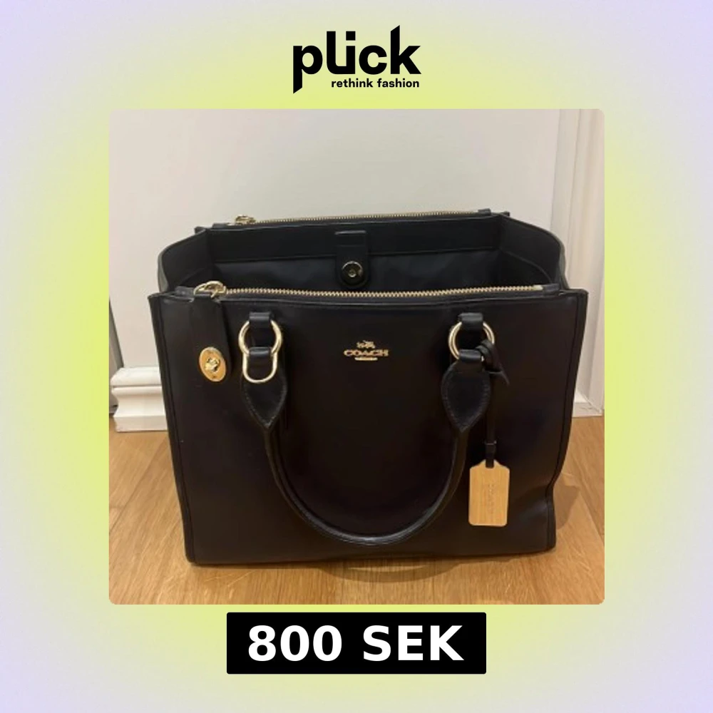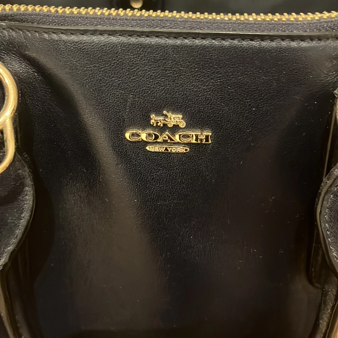 Snygg marinblå handväska från Coach i skinn med guldfärgade detaljer köpt från NK. Väskan har både handtag och en avtagbar axelrem, samt dragkedja för säker förvaring. Perfekt för att bära med sig det viktigaste med stil. Inga skador, inga fel precis som ny ✨