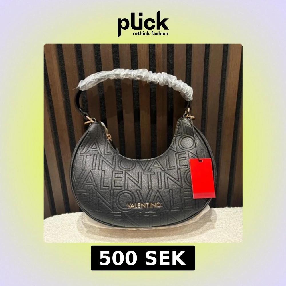 Köpte väskan för 1495kr säljer den för endast 500kr den är Snygg svart axelväska från Valentino med präglad logotyp över hela väskan och guldfärgade detaljer. Väskan har en rundad form, dragkedja upptill och ett brett handtag. Materialet är skinn med struktur och väskan har en röd tagg från märket. Väskanr helt ny med prislapp på aldrig använd . Medföljer två st band
