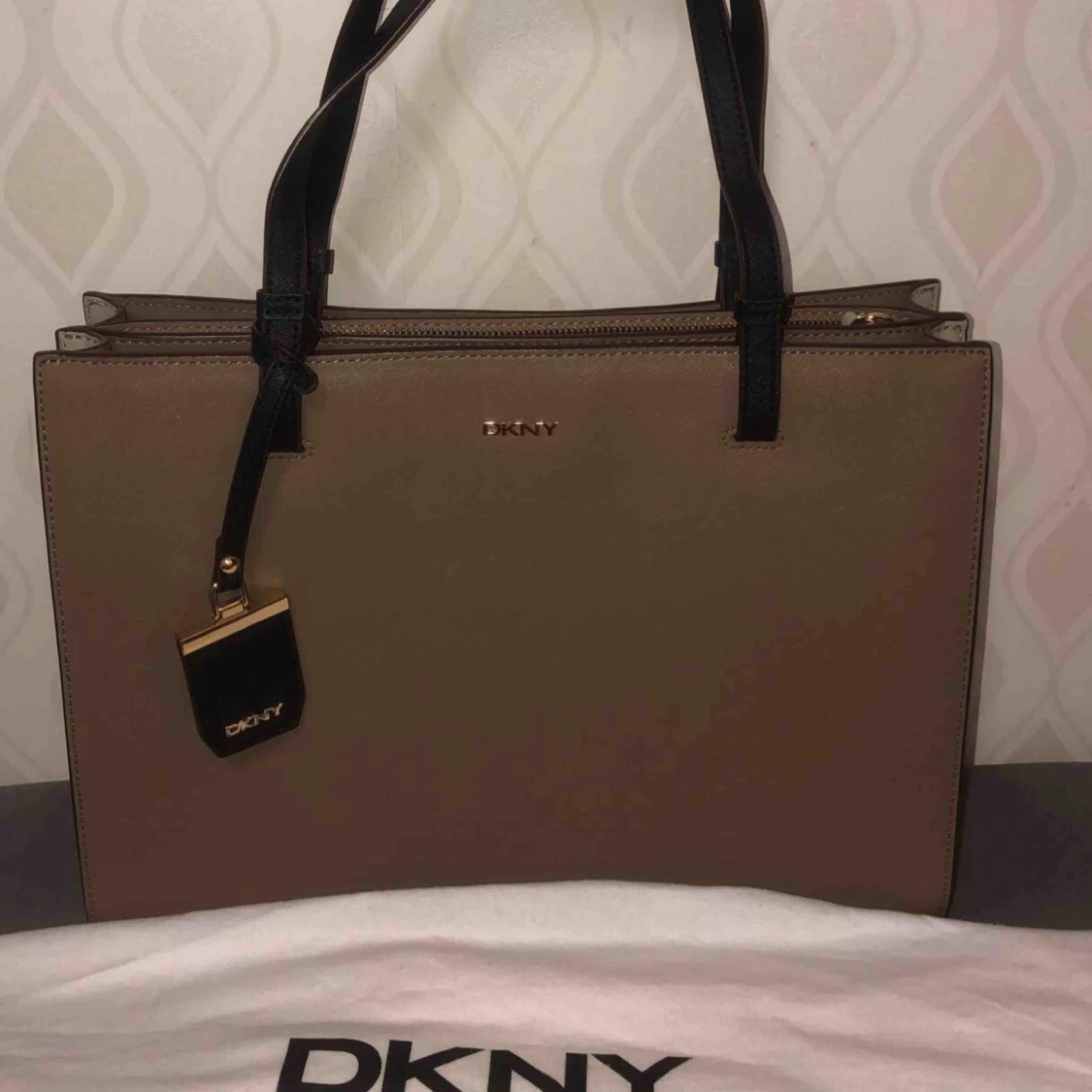 Beige Dkny väska (ÄKTA). Nypris 3300kr säljs 1500kr Nyskick, vid intresse finns fler bilder!