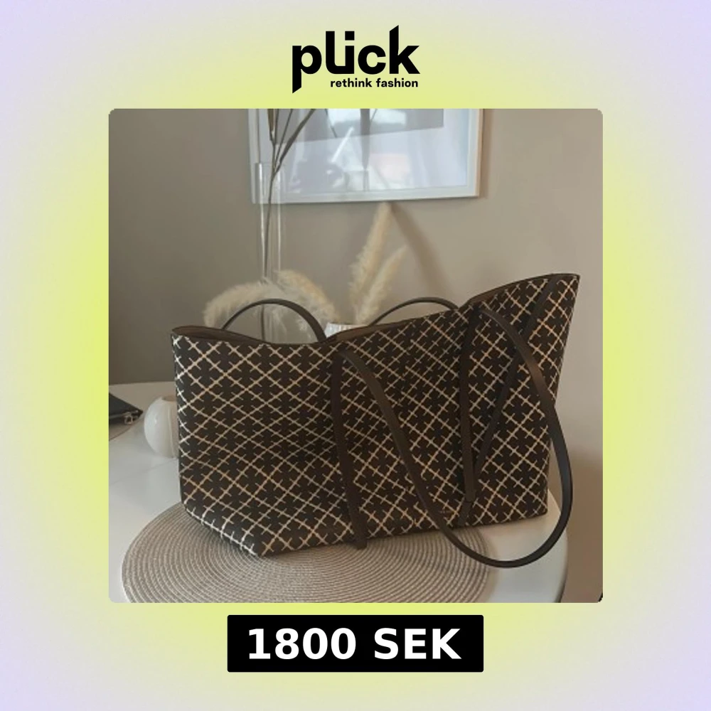 Snygg shoppingväska med ett stilrent rutigt mönster i brun och beige. Väskan har långa, smala bruna handtag och en rymlig insida, perfekt för shoppingturen. Den är både praktisk och trendig.