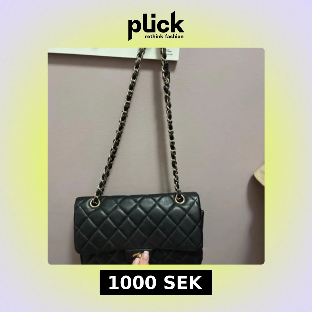 Snygg svart quiltad axelväska med kedjeaxelrem . Väskan har en elegant design med flera fack inuti, perfekt för att hålla ordning på dina saker. En tidlös klassiker för alla tillfällen.