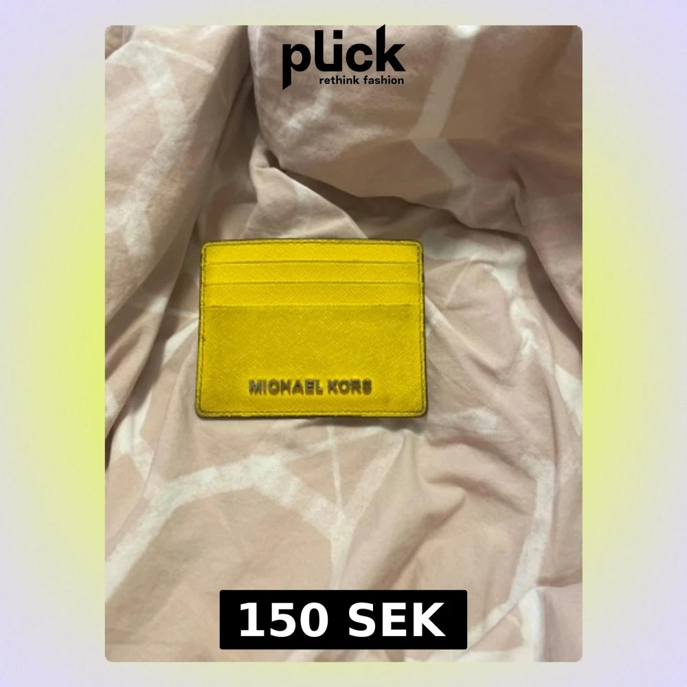 Snygg gul korthållare från Michael Kors i skinn med flera kortfack och ett fönster för ID på baksidan. Perfekt att ha i fickan eller väskan när du vill ha med dig det viktigaste. Stilren design med silverfärgad logga framtill.