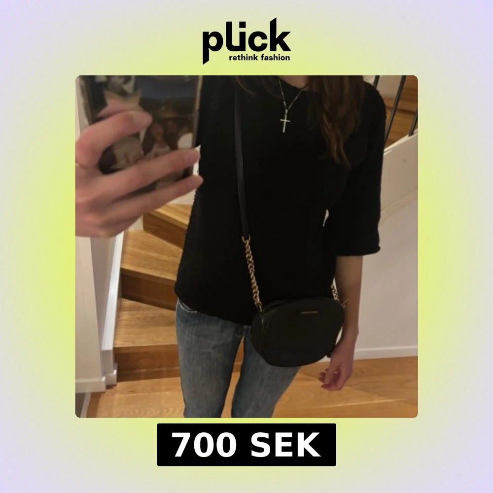 Snygg svart axelväska från Michael Kors i läder. Väskan har guldfärgade kedjedetaljer och en dekorativ tofs som går att ta av om man vill. Väskan har en justerbar axelrem. Jättefin och i perfekt storlek!