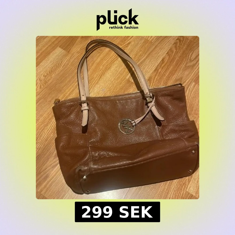 Snygg handväska i brunt skinn från Michael Kors med ljusa handtag och metallfästen. Väskan har MK-logga i silver och praktisk dragkedja upptill. Perfekt storlek för att få plats med allt du behöver och stilren design som lyfter din look. Skick se på bilderna sliten på vissa ställen men inget störande men äkta
