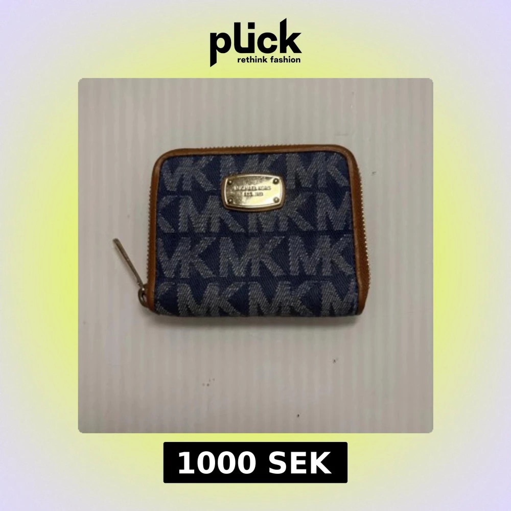 Snygg plånbok från Michael Kors i blått och beige med MK-mönster över hela utsidan. Plånboken har guldfärgad dragkedja och detaljer, samt flera fack för kort och mynt på insidan. Materialet är en mix av textil och skinn, perfekt för dig som gillar stilrena accessoarer.