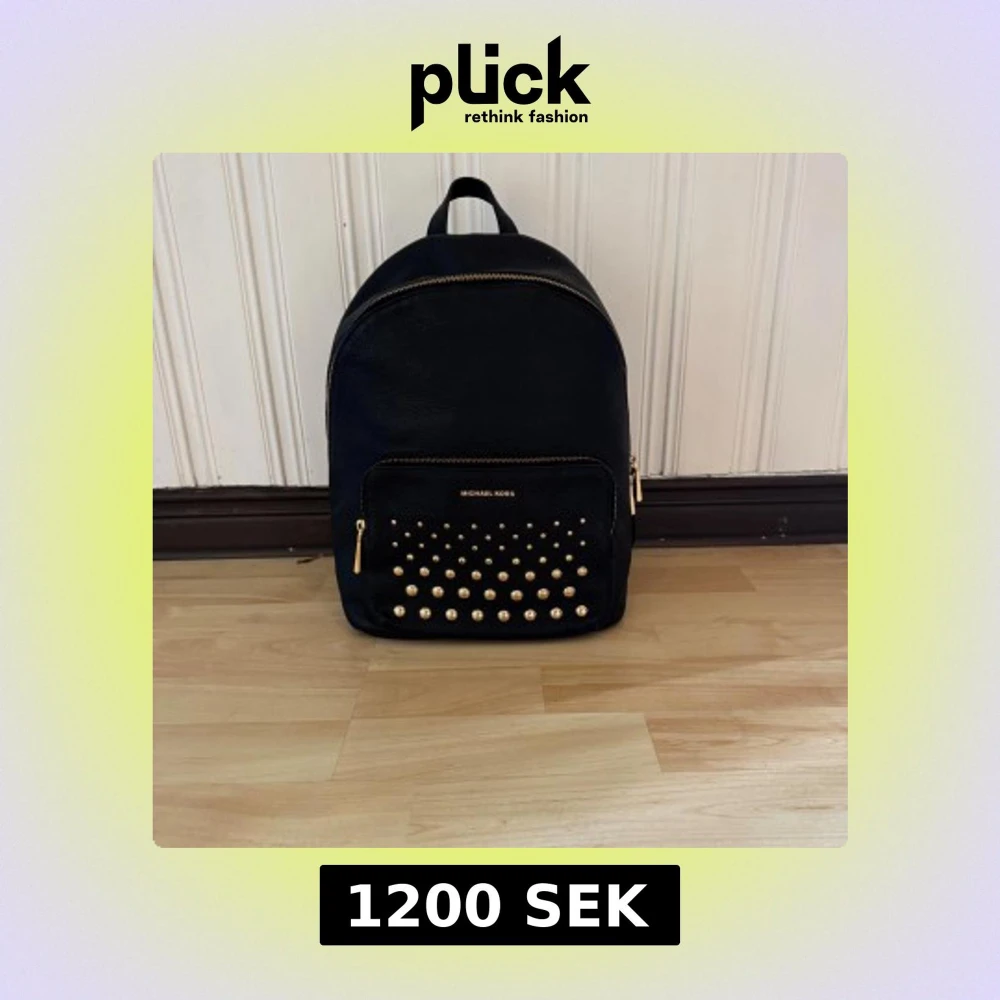 Snygg svart ryggsäck från Michael Kors i skinn med guldfärgade nitar på frontfickan och guldfärgade dragkedjor. Rymligt huvudfack, innerficka med dragkedja och justerbara axelremmar. Den har vara stått så den har prislappen kvar.
