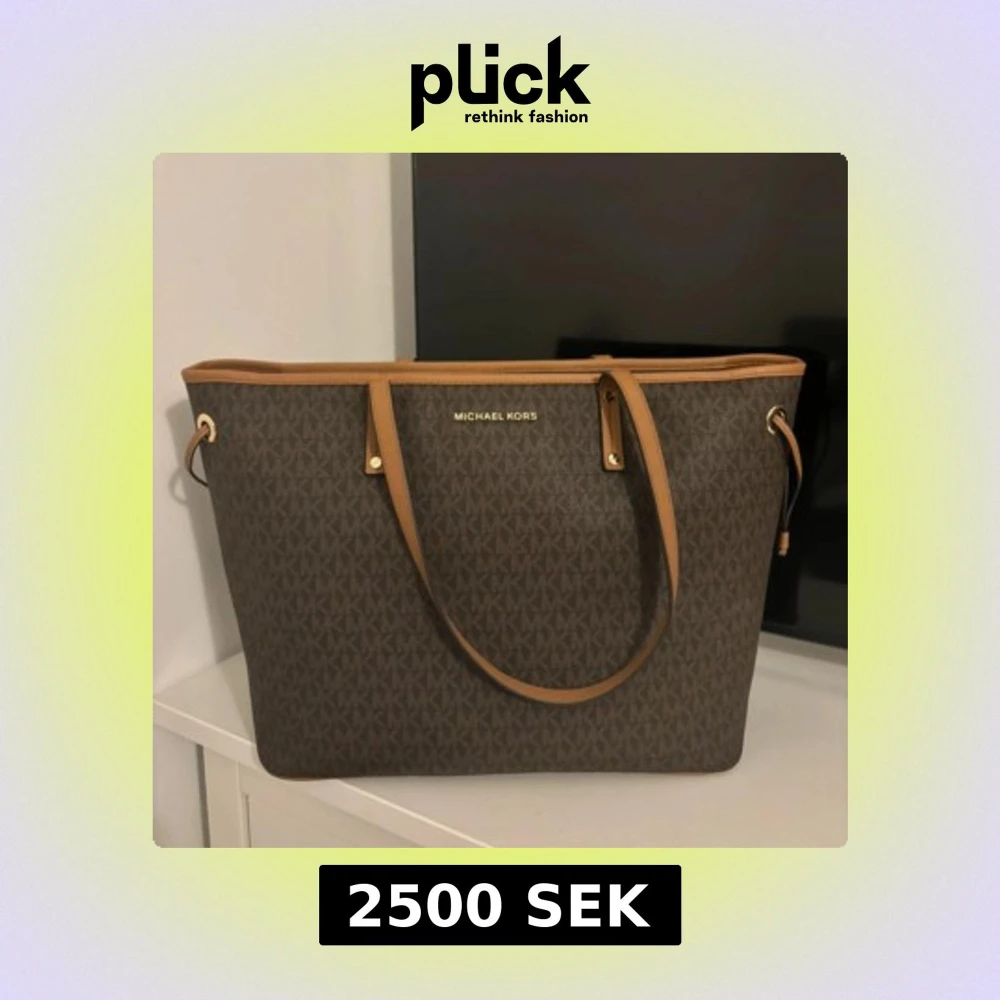 Snygg brun axelväska från Michael Kors med klassiskt MK-mönster. Väskan har två handtag och detaljer i guld. Perfekt för att bära med sig allt man behöver under dagen. Stilren och praktisk design som passar till många tillfällen.