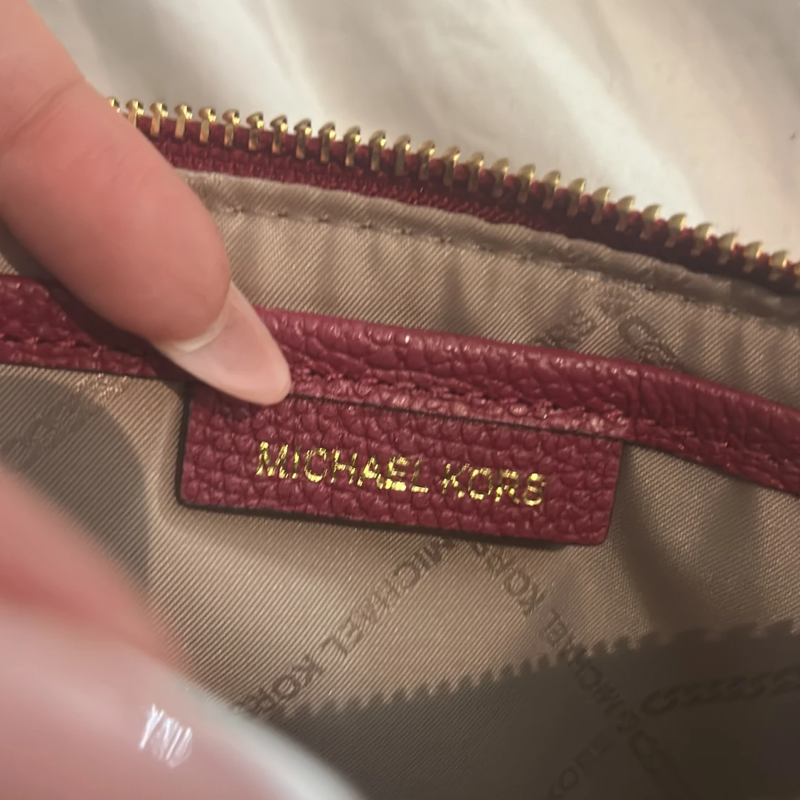 Snygg vinröd handväska från Michael Kors i skinn med guldfärgad kedja som axelrem. Aldrig använd