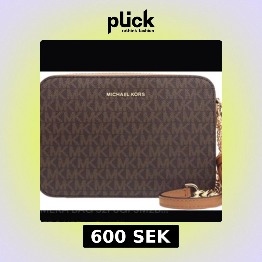 Snygg brun axelväska från Michael Kors med MK-logga över hela väskan. Har lite skador i sig som är täckta med brunt nagellack då jag kan gå ner i priset för det.