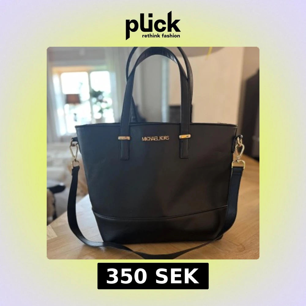 Stilren svart axelväska från Michael Kors i skinn med guldfärgade detaljer och logga framtill. Väskan har både handtag och avtagbar axelrem, perfekt för att bära på olika sätt. Klassisk design som passar till många outfits.