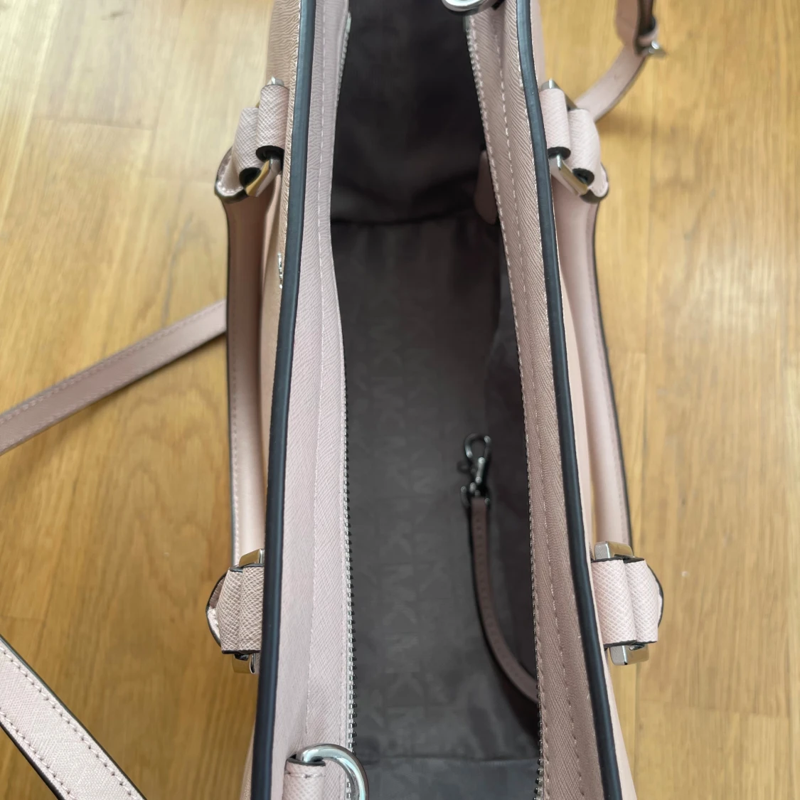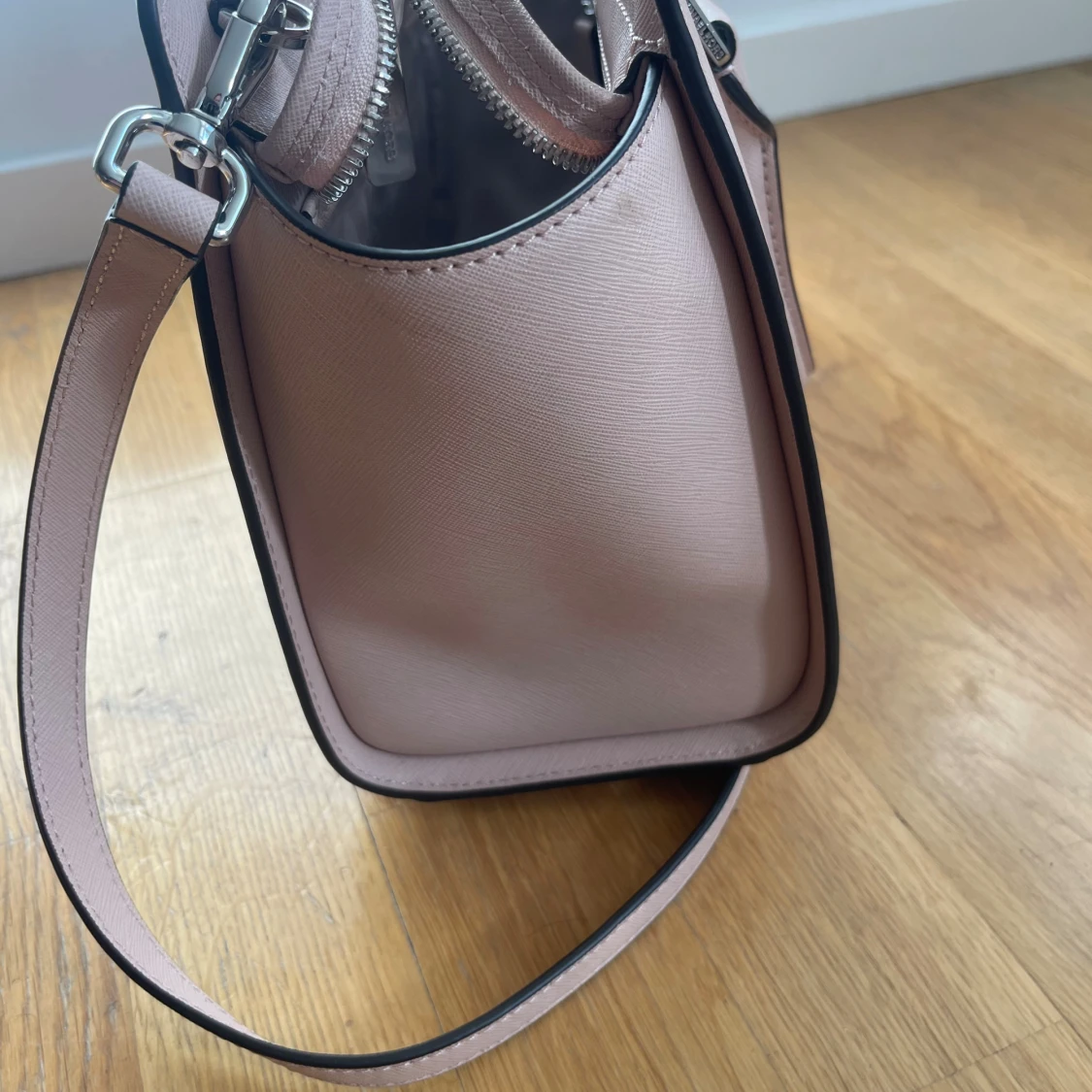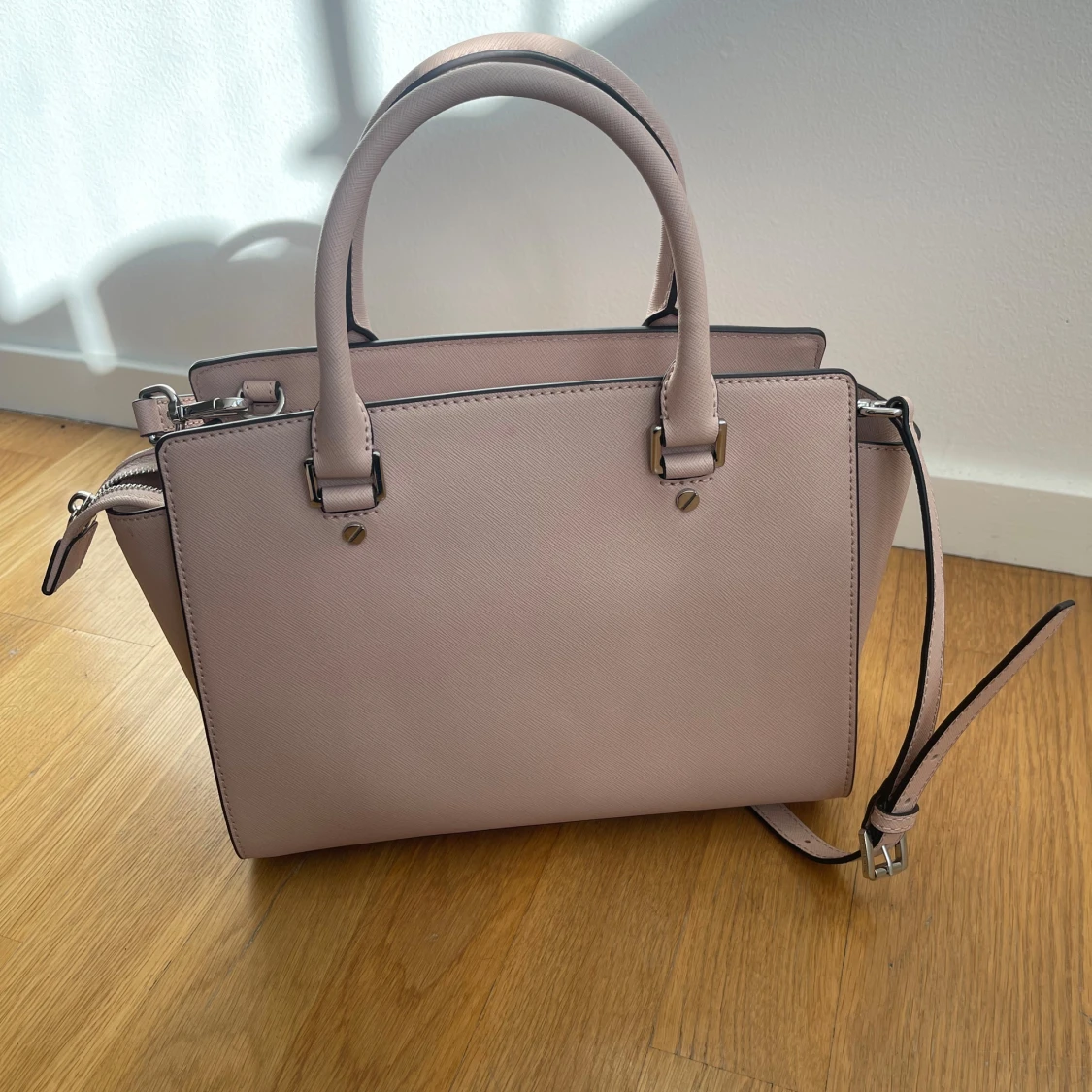 Rosa handväska från Michael Kors med justerbar axelrem och silverfärgade detaljer. Väskan har ett rymligt huvudfack med dragkedja och plats för dina viktigaste ägodelar. Väskan är i riktigt fint skick, bortsett från en väldigt liten fläck på ena kortsidan. Annars är den i toppskick. Bustbag ingår.