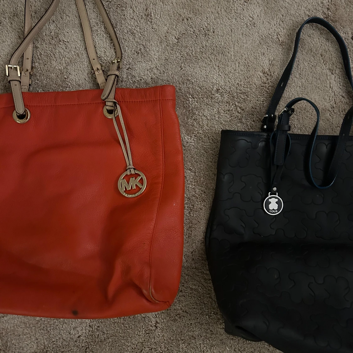 Orange skinnväska från Michael Kors & Svart Teddy bag från Tous