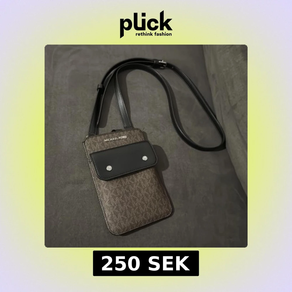 Snygg och praktisk axelväska från Michael Kors i brun och svart. Väskan har en justerbar axelrem och en framficka med knappar. Kedjan på baksidan är för att det ska bli lättare att få tag på allt som ligger i väskan.