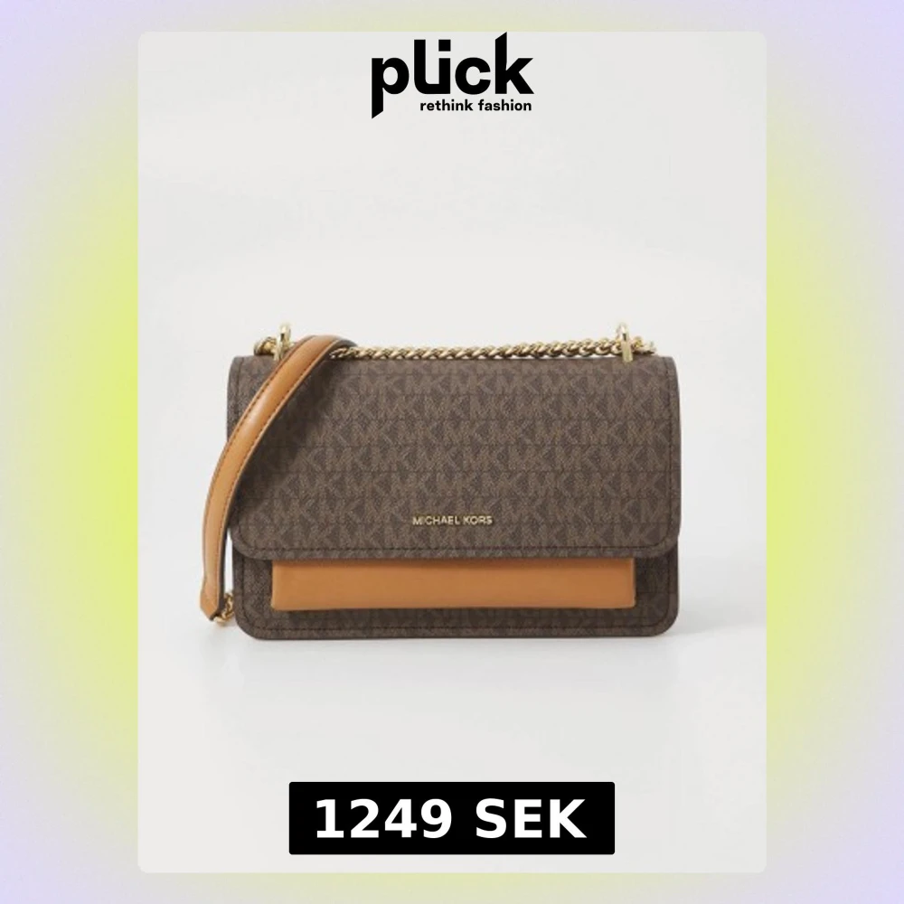 Snygg brun axelväska från Michael Kors med guldiga kedjedetaljer och logomönster över hela väskan. Väskan har en rektangulär form, magnetlås och insida med dragkedja. Kombinerar brunt och beige skinn för en lyxig vibe. Nypris 3095 kr