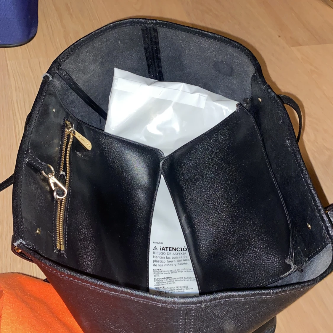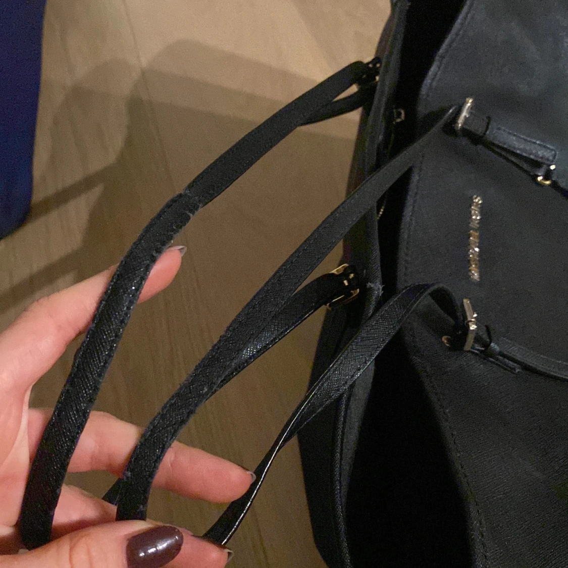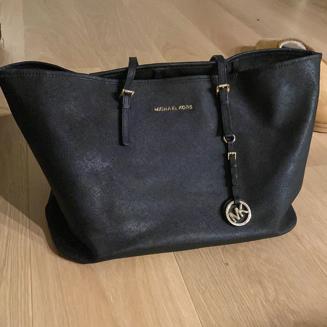 Snygg svart axelväska från Michael Kors i skinn. Väskan har en stilren design med guldfärgade detaljer och en praktisk dragkedja inuti. Perfekt för att bära dina dagliga nödvändigheter med stil. Synligt använd, därav det billiga priset