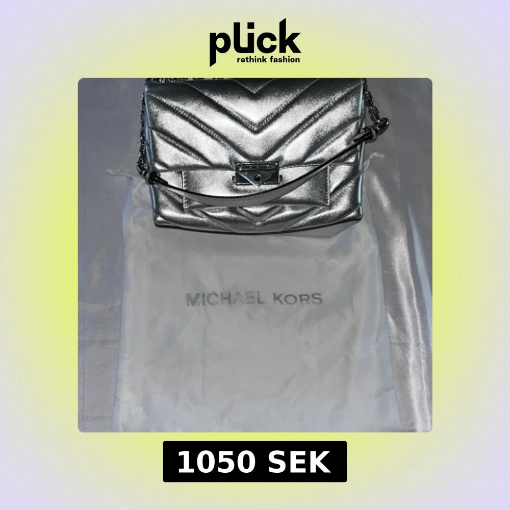 Säljer en snygg silverfärgad axelväska från Michael Kors med quiltad design och kedjerem. Väskan har ett elegant metallspänne framtill och är perfekt för att lyfta din outfit.Skydds påsen kommer med.