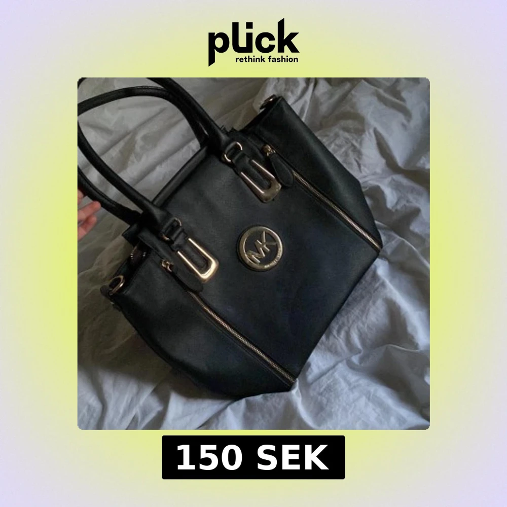 Snygg svart handväska från Michael Kors med guldfärgade detaljer och dragkedjor. Väskan har ett stort huvudfack och flera mindre fack inuti för enkel organisering. Perfekt för att bära med sig alla nödvändigheter med stil.