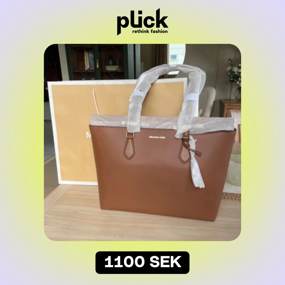 Helt ny och oanvänd brun Michael kors väska Tote Bag med laptopfack 👜 Storleken blev fel och gick tyvärr inte att lämna tillbaka Mått: 42x27cm (den större modellen) 1100kr