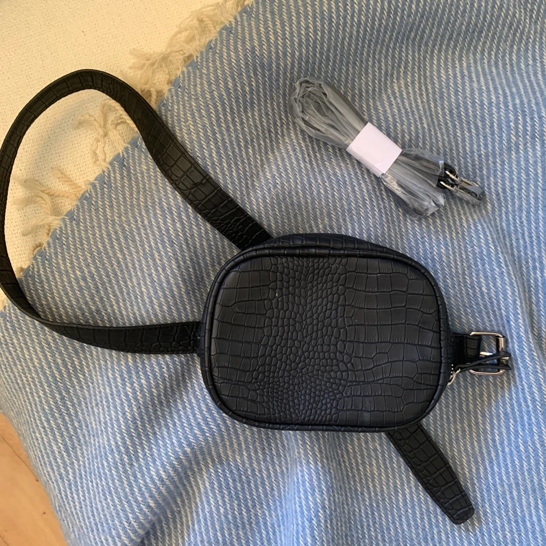 Nästintill oanvänd midjeväska från Pieces! I ormskinnsimitation, oöppnat axelband medföljer.
