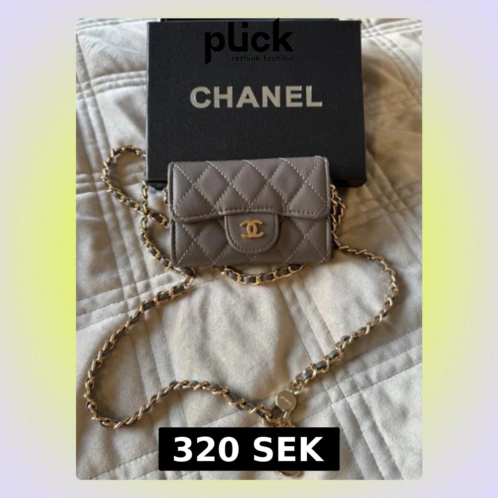 Grå mini väska med guldiga detaljer. Som en korthållare.