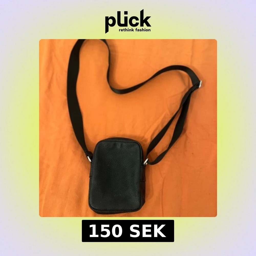 En stilren svart axelväska i skinn med justerbart band och dragkedja i metall. Väskan har en enkel, rektangulär form och passar perfekt för att bära det viktigaste. Snygg och praktisk att ha med sig överallt.