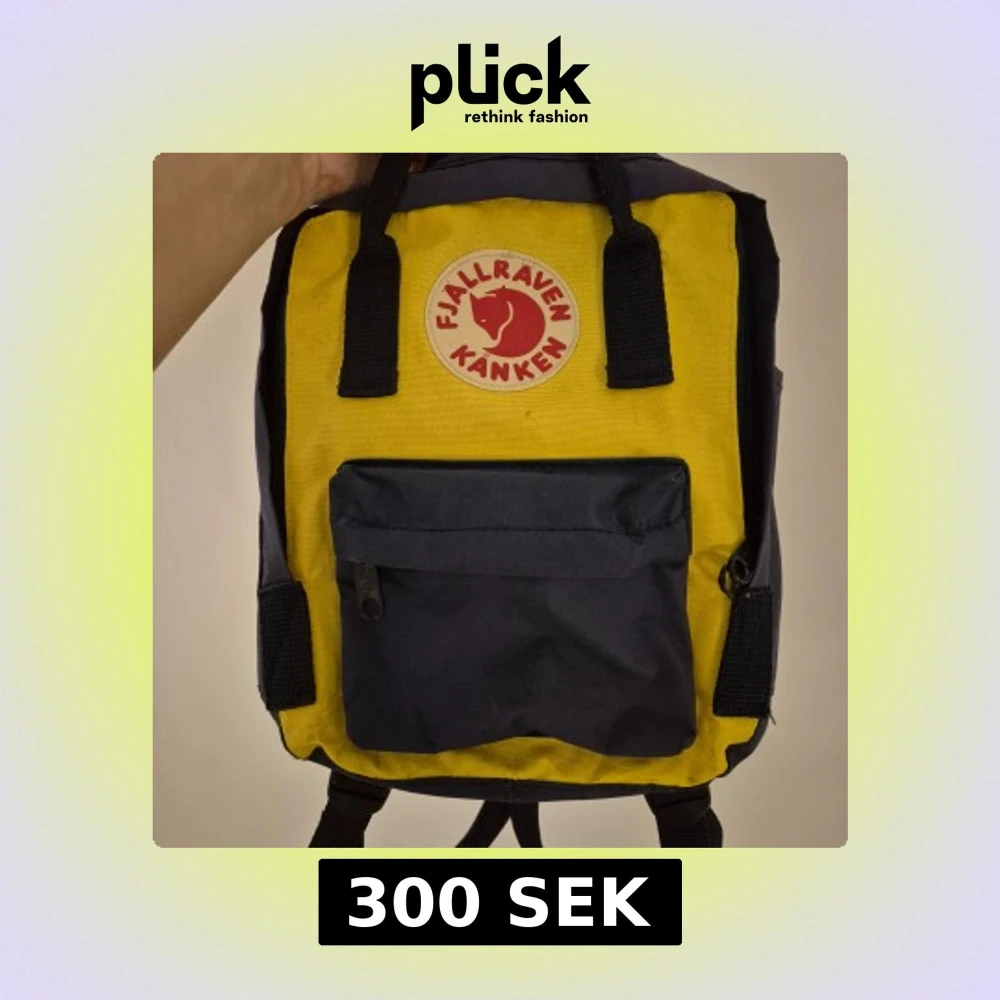 Säljer en klassisk Fjällräven Kånken Mini ryggsäck i en snygg gul och blå färgkombination. Ryggsäcken har ett huvudfack och en praktisk framficka med dragkedja. Onamnad och sittunderlag finns med.Perfekt för både skola och utflykter! Finns någon liten fläck, se bild.