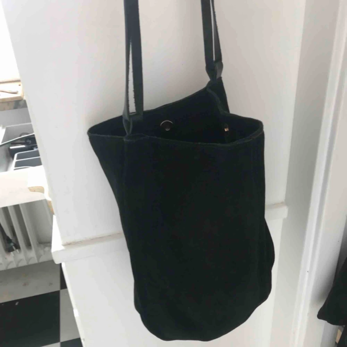 Jättefin svart väska i mocka från mint & berry använd fåtal gånger, nyskick!