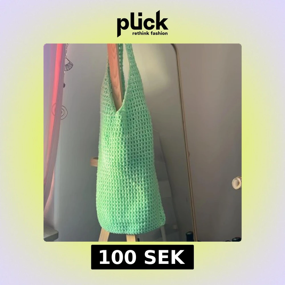 Säljer en mintgrön virkad väska med lång axelrem. Väskan är luftig och har ett virkat mönster som ger en cool och avslappnad vibe. Perfekt att slänga över axeln när du ska ut på stan eller till stranden. Superenkel att matcha med olika outfits!