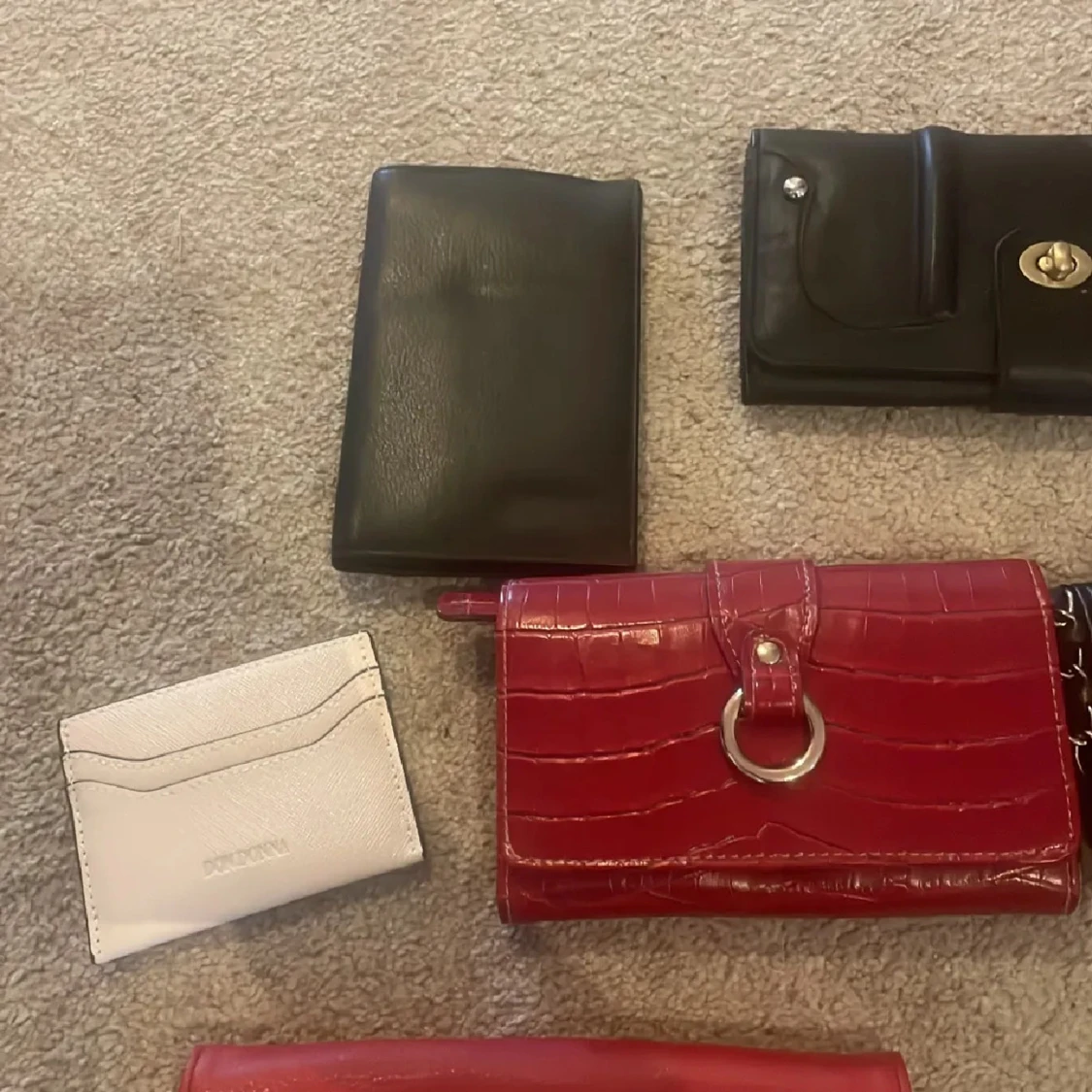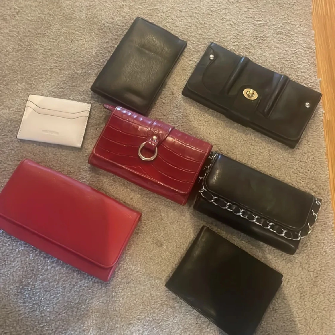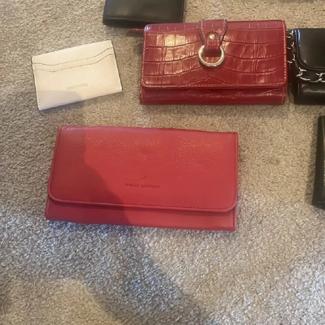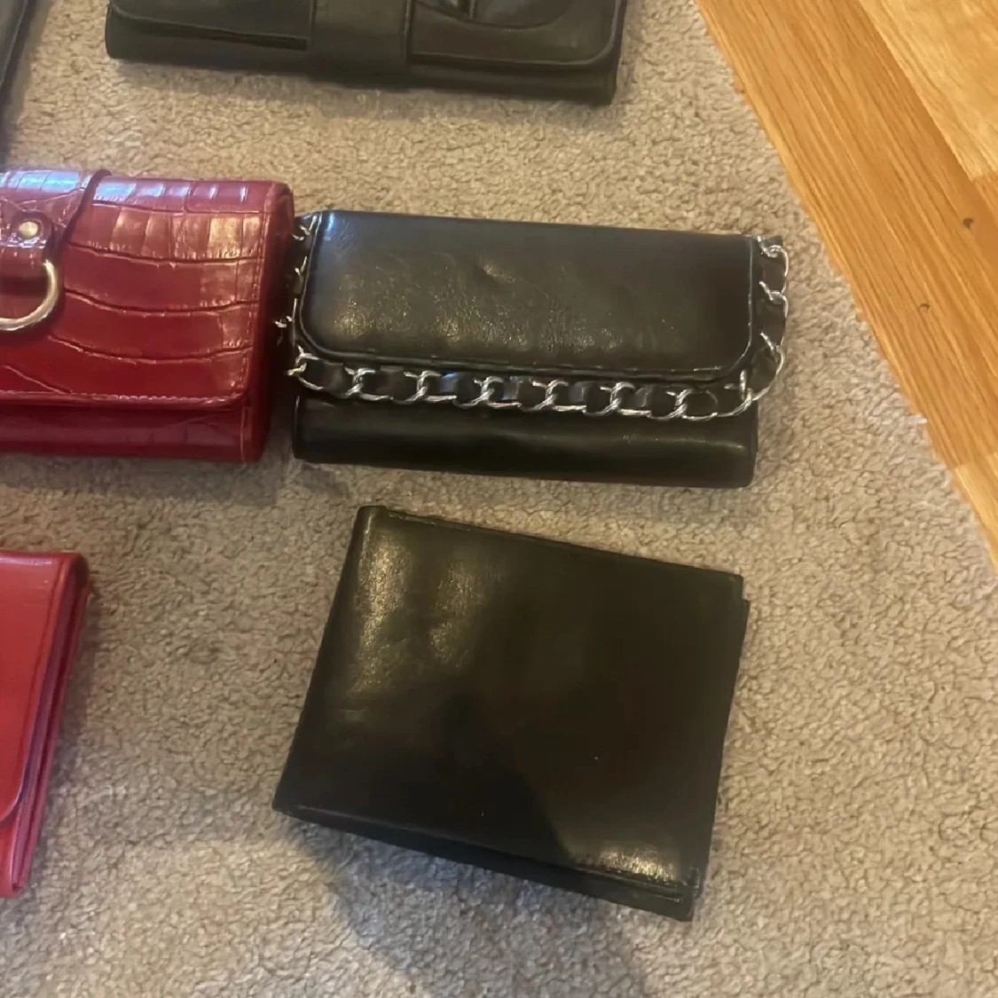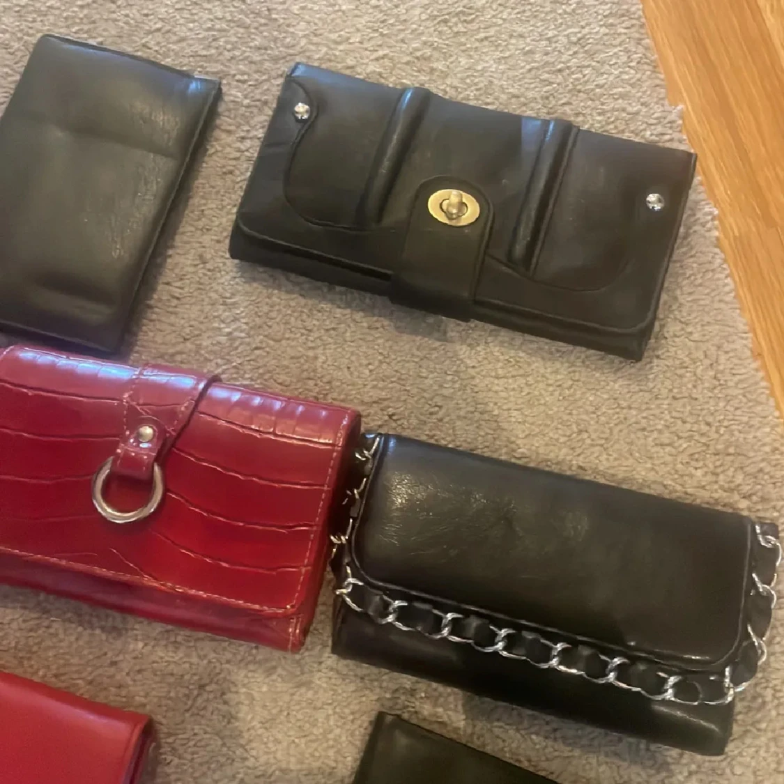 Säljer ett gäng snygga plånböcker och kuvertväskor i svart, rött och vitt skinn. En röd med croco-mönster och metallring, en svart med kedjedetalj, samt en vit kortplånbok från Don Donna. Perfekt för dig som gillar stilrena accessoarer. Helt nya. 100 kr st. Endast swish betalning