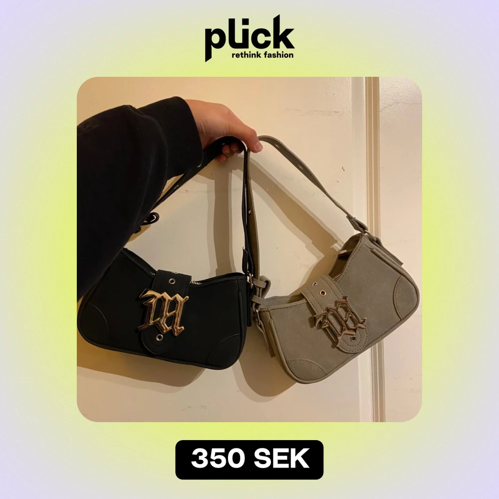 Två snygga axelväskor i svart och beige med en cool metallinitial på framsidan. Väskorna har en dragkedja upptill och justerbara axelremmar. Perfekt för att ge din outfit en edgy touch! 🖤