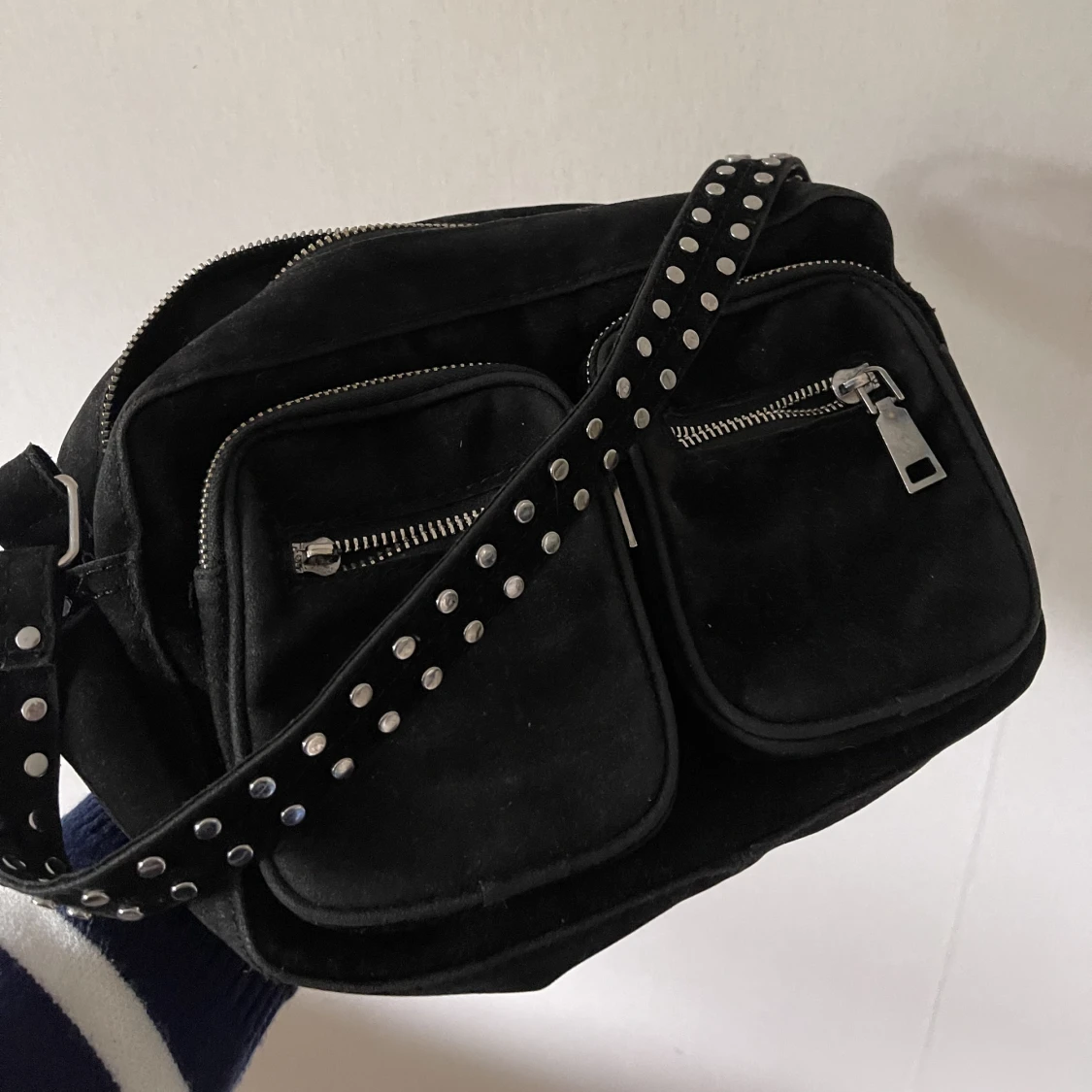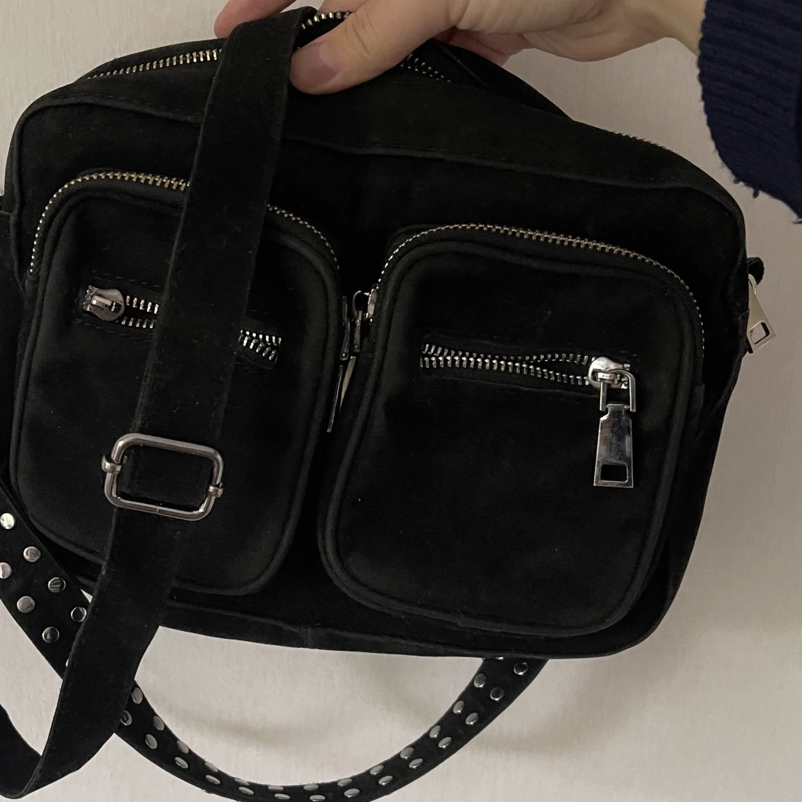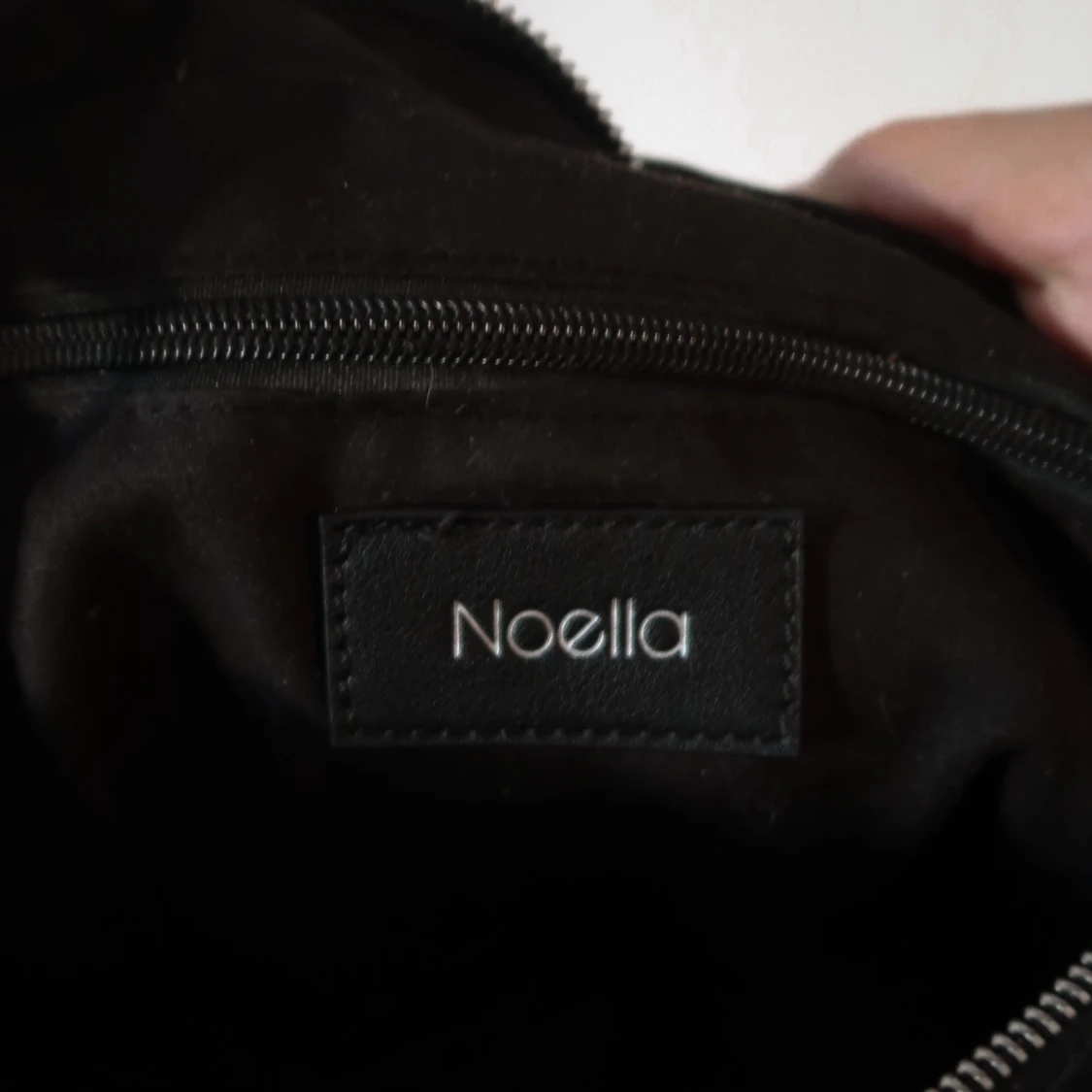 Mockaväska från Noella. Modellen heter Celina. Det är en liten väska men mycket får plats i den och det finns även små fack både i väskan och utanpå. Finns ett längre axelband som medföljer väskan. Saknas en bit av dragkedjan på vänster sida (se bild)