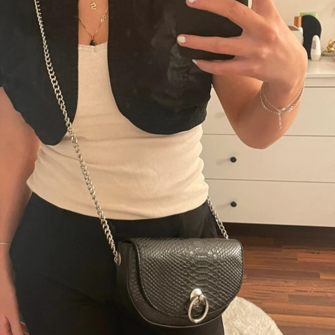 Sjukt snygg ormskinns väska som passar bra till allt. Lite avskavd färg på spännet men inget som man tänker på. Pris går att diskutera