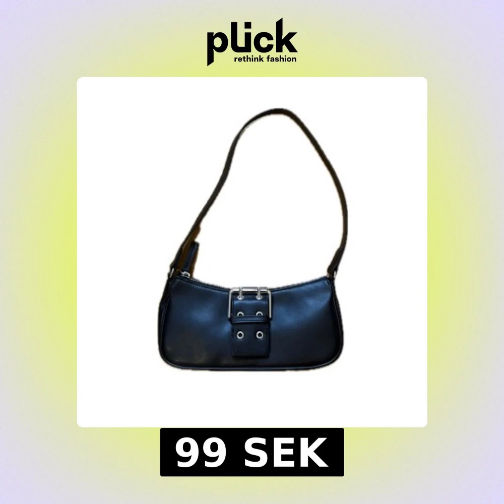 Stilren svart axelväska i skinn med silverfärgat spänne och detaljer framtill.