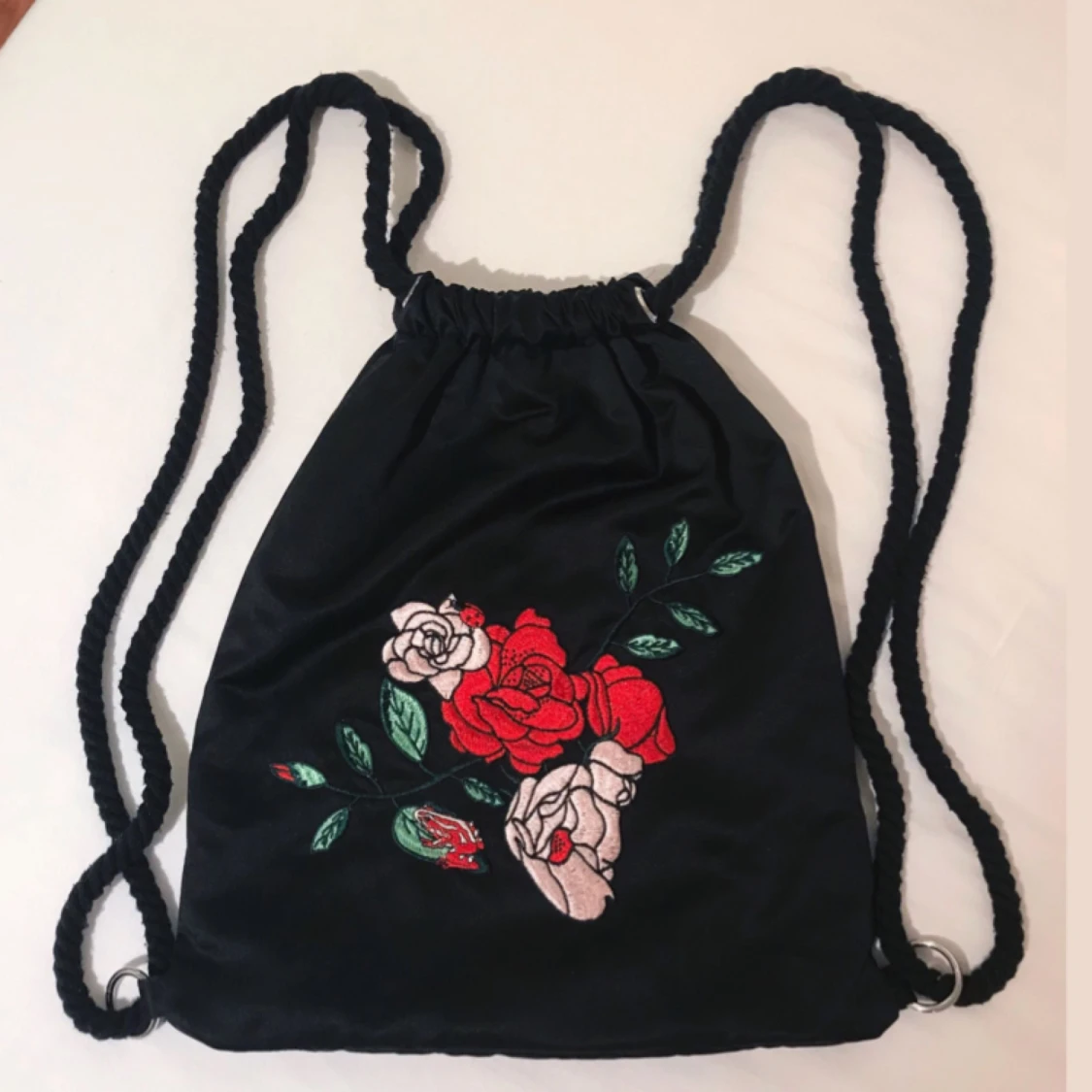 Superfin gympapåse med tryck i satinliknande tyg. Normalstor storlek!