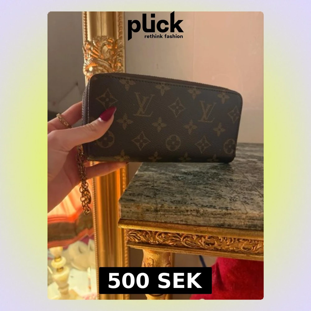 Säljer en klassisk brun plånbok från med ikoniskt monogrammönster och guldfärgad kedjedetalj. Plånboken har dragkedja runtom och flera fack inuti för kort och kontanter. Perfekt accessoar för dig som gillar lyxig och tidlös design.