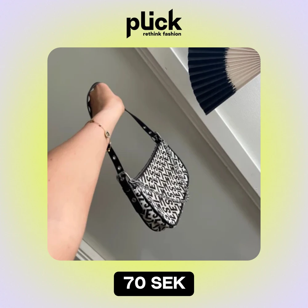 Axelväska med bokstavsmönster och dekorativ silverfärgad kedja, som ny! Använd EN gång. Remmen är justerbar. 💘