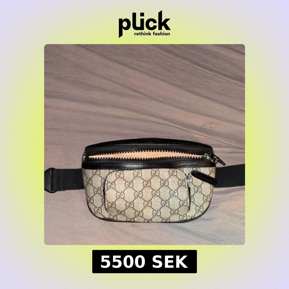 Snygg magväska från Gucci med det klassiska GG-mönstret. Väskan har en justerbar rem och flera dragkedjeförsedda fack för säker förvaring. Perfekt för att hålla dina saker organiserade och lättillgängliga.