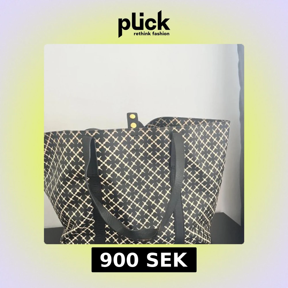 Snygg shoppingväska från By Malene Birger med ett svart och vitt mönster. Väskan har svarta handtag och en praktisk storlek för alla dina behov. Perfekt för en dag på stan eller som en stilren accessoar.