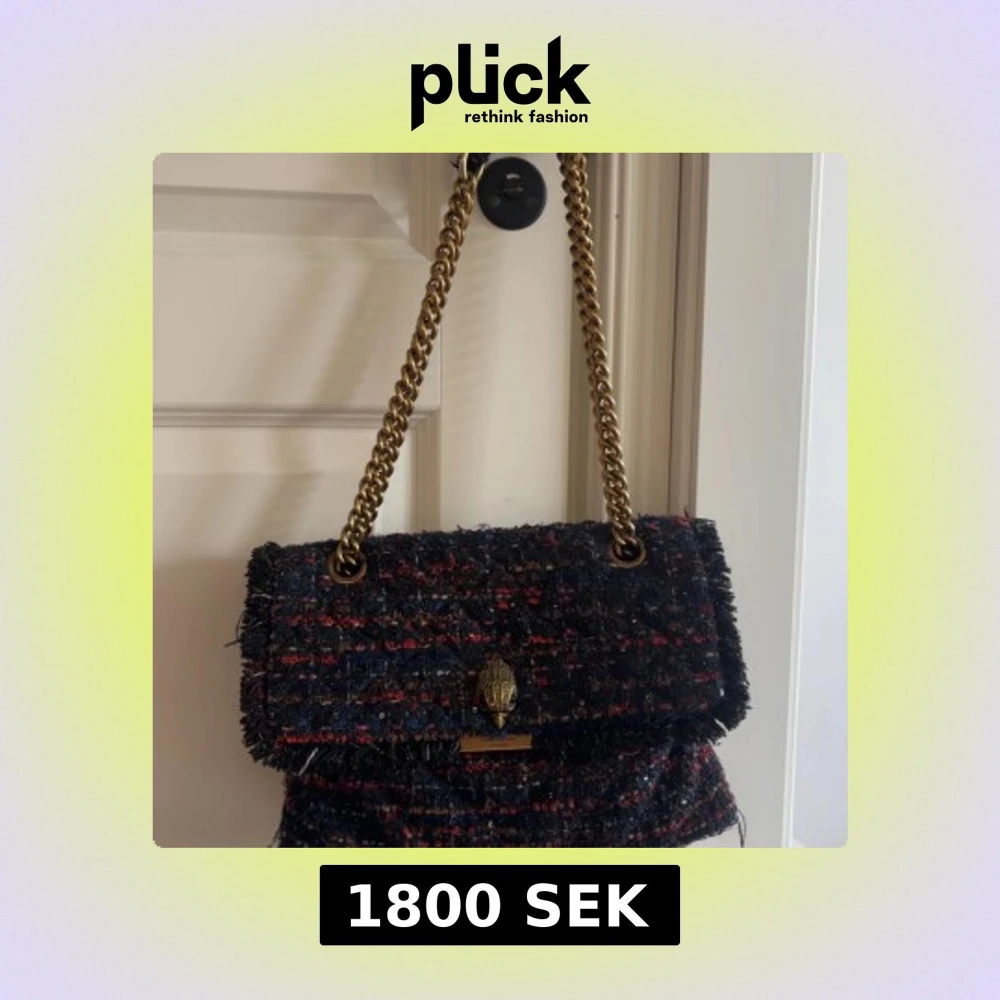 Säljer en snygg axelväska från Kurt Geiger i mörkblått tyg med inslag av rött och guld. Den är i bra skick och man får plats med mycket saker i den!
