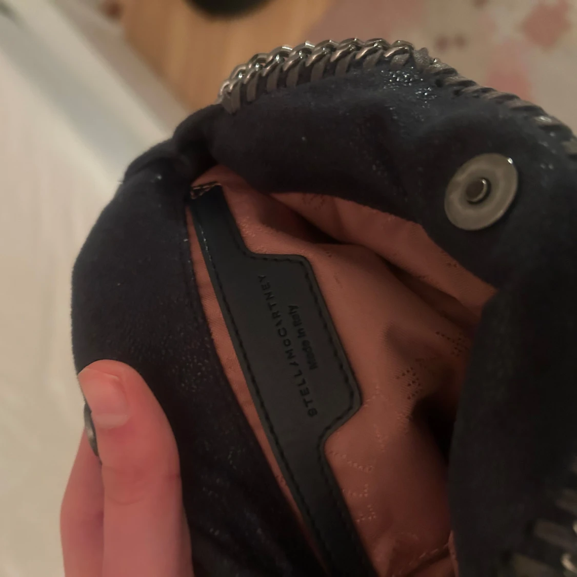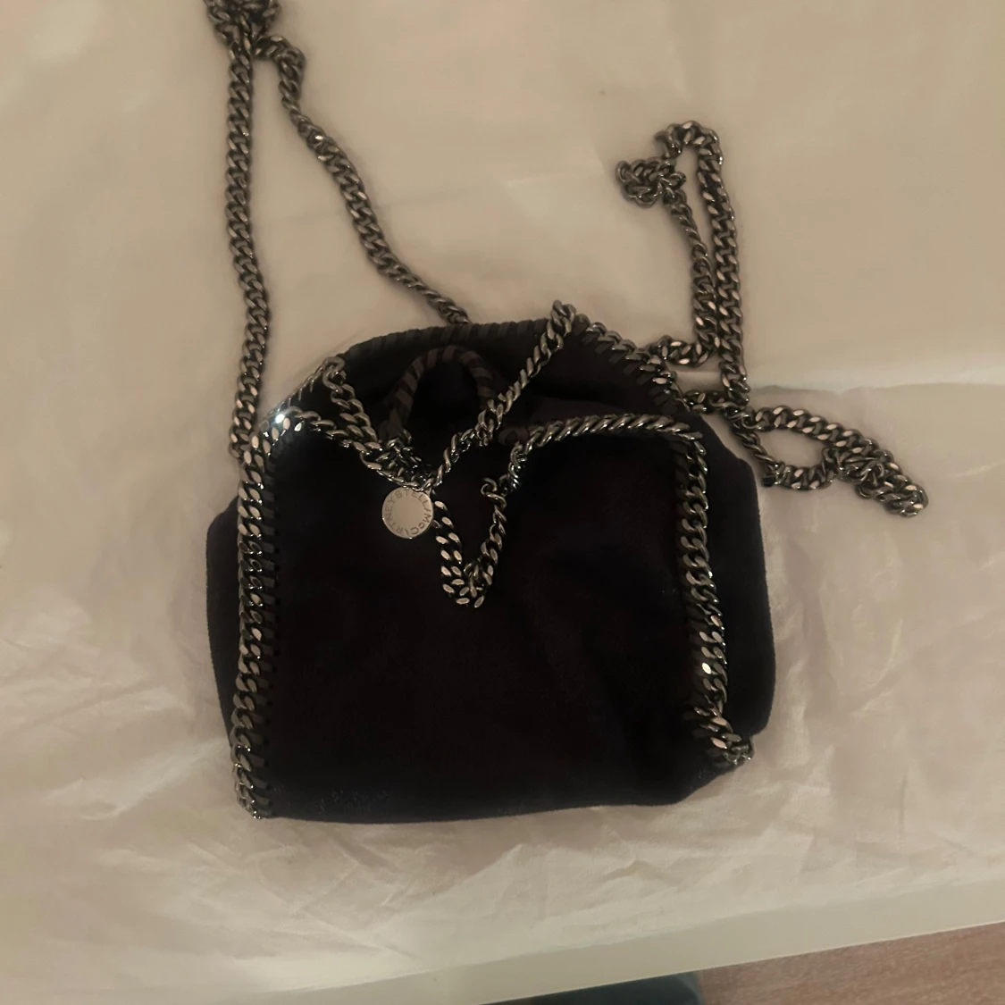 SkitSnygg mörkblå Tiny Falabella väska från Stella McCartney.Väskan kommer med en dustbag men har tyvärr inte kvar kvittot. skriv för fler bilder eller frågor. Den är i väldigt bra skick utan några defekter.