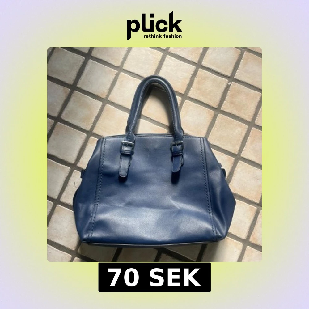 Snygg mörkblå axelväska med både handtag och axelrem. Väskan har en dragkedja på baksidan och insidan är fodrad med ett färgglatt blommigt tyg.🌸
