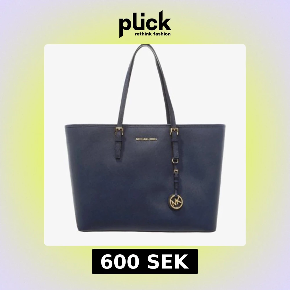 Stilren mörkblå väska från Michael Kors i skinn med guldiga metalldetaljer och klassisk MK-logga. Väskan har en rymlig insida. Väskan är använd men den är inte sliten.