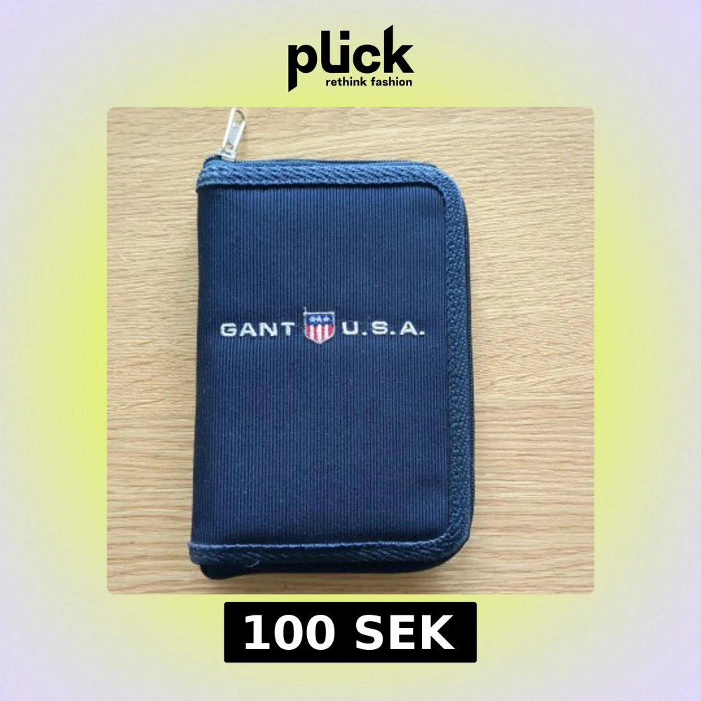Snygg mörkblå plånbok från Gant med broderad logga och USA-sköld på framsidan. Plånboken har dragkedja runtom, flera kortfack och ett separat myntfack med dragkedja. Utsidan är i textil och insidan i skinnliknande material.