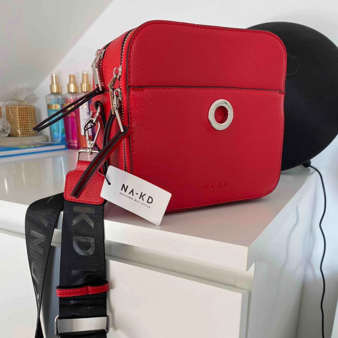 Röd väska från nakd. Både smalt och tjock band medkommer. Väskan har flera fack och rymmer mycket