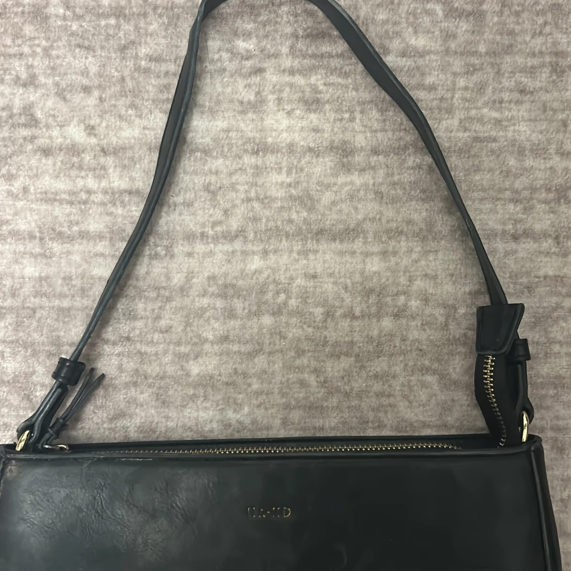Snygg svart axelväska från NA-KD i skinnmaterial. Väskan har en stilren design med en praktisk dragkedja upptill. Perfekt för att bära dina nödvändigheter med stil.