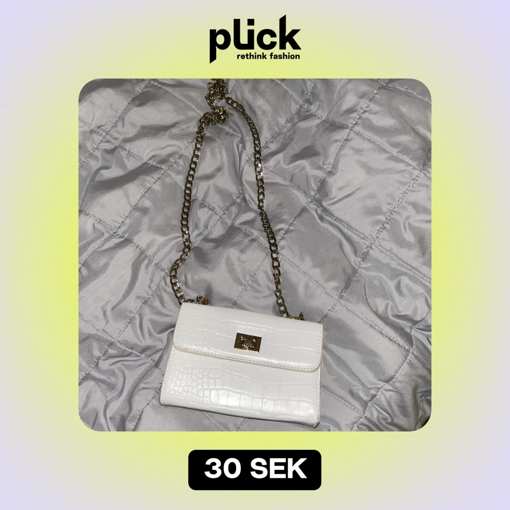 Säljer en superfin vit axelväska från NA-KD med krokodilpräglat mönster. Väskan har en elegant guldkedja och ett stilrent spänne framtill. Perfekt för en utekväll eller fest! 👜✨