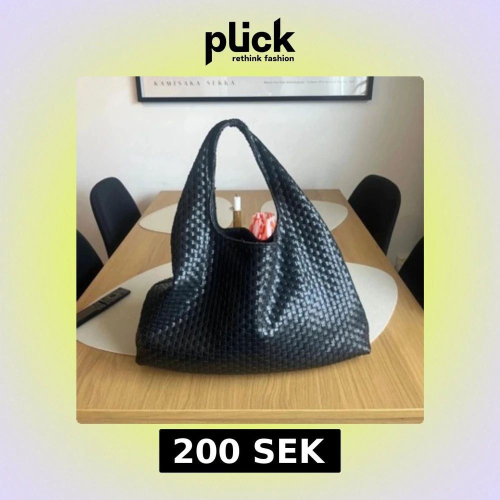 Säljer en svart handväska från NA-KD med snygg flätad design i skinnimitation. Väskan har en mjuk, rymlig form och ett handtag som gör den enkel att bära. Perfekt för dig som vill ha en trendig och stilren accessoar till vardagen.