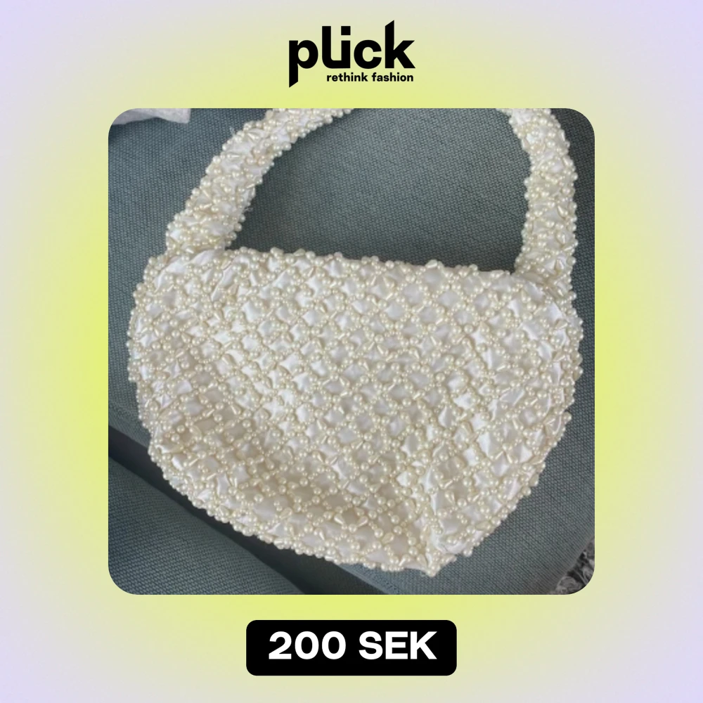 Säljer en superfin vit handväska som är täckt med pärlor. Väskan har en unik och elegant design som passar perfekt för festliga tillfällen. Den är i nyskick och har en bekväm axelrem som också är dekorerad med pärlor. Perfekt för att ge din outfit en extra touch av glamour!